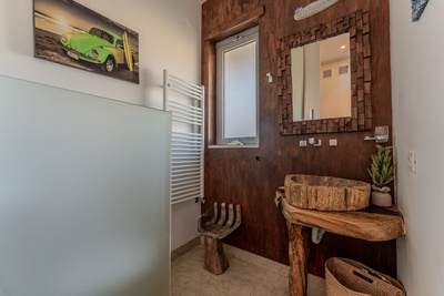 Um quarto com casa de banho privativa, ideal como escritório ou quarto de hóspedes.