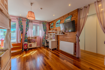Acesso direto ao jardim, piscina coberta e sauna.