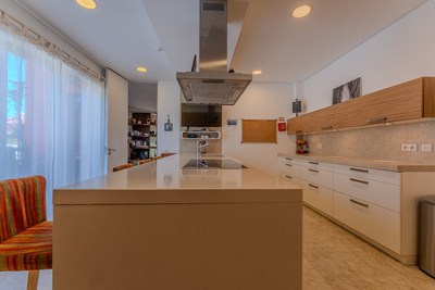 Cozinha ampla com 24 m², equipada e com despensa de apoio.