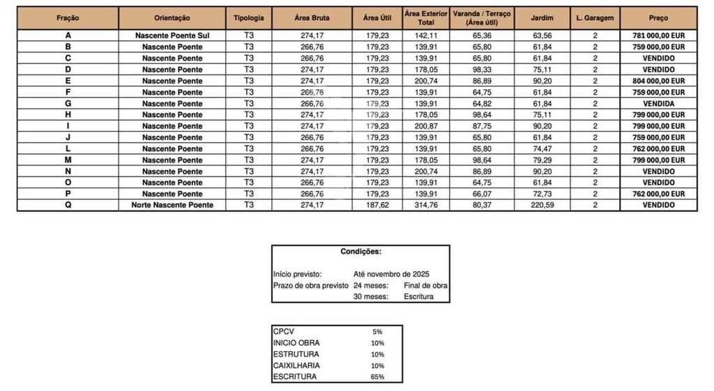 Fração P - Nascente / PoenteO “Privilege Gaia” é um projeto inovador e inspirador que une arquitetura vanguardista à harmonia da natureza.São 16 moradias de estilo minimalista, definidas por linhas simples, espaços amplos e abertos, com 3 quartos e varandas com grandes janelas que proporcionam uma abundante entrada de luz natural. As moradias contam ainda com zona de lavandaria independente, arrumos e estacionamento privativo.Inspirado pelo ambiente natural e pela magnífica luz da costa atlântica, o Privilege Gaia nasce para oferecer um estilo de vida equilibrado entre conforto e tranquilidade.Localizado em Arcozelo, a apenas 10 km da cidade do Porto, o projeto encontra-se numa zona consolidada, rodeada de praias, parques, campos de golfe, e com todos os serviços essenciais ao dia a dia. Oferece ainda excelentes acessos às principais vias de comunicação, seja de carro ou de comboio.Possibilidade de instalação de piscina de 5mx4m, com estrutura em betão, por mais 30.000 € (sem aquecimento e, sem bomba de calor).Privilege Gaia é um lugar para viver... e para sonhar. InfraestruturasEspaços exteriores e confortoJardim privativoZona verde espaçosaEstacionamento privadoInfraestrutura preparada para futura instalação de piscinaPré-instalação para carregamento de viaturas elétricasFuncionalidade e arrumaçãoLavandariaArrumosArmários embutidosAcabamentos e equipamentos de qualidadePavimento multicamadas com acabamento em madeira nobreTetos falsos em gesso cartonado com iluminação integradaEletrodomésticos de gama altaToalheiros elétricosConforto térmico e segurançaSistema de climatização com ar condicionadoBomba de calor aerotérmica para aquecimento de águasPorta de segurançaSistema de videoporteiroSistema integrado de controlo de iluminação e estoresProteção solar e privacidadeTelas interiores elétricas tipo “Blackout” com sistema de calhas nos quartosAcessibilidadesLigações rodoviárias e transportes públicosAcesso rápido à A29Estação Ferroviária de Miramar – 3 minCidade do Porto – 15 minPontos de interesse e lazerCapela do Senhor da Pedra – 5 minMiramar Golf Club – 4 minPassadiços da Ribeira do Espírito Santo – 2 minServiços de saúdeCentro Hospitalar Vila Nova de Gaia / Espinho – 9 minPredimed Imobiliária, Mediação Imobiliária, Lda.Avenida Brasil 43, 12º Andar, 1700-062 LisboaLicença AMI nº 22503Pessoa Coletiva nº 517 239 345Seguro Responsabilidade Civil: Nº de Apólice RC65379424 Fidelidade